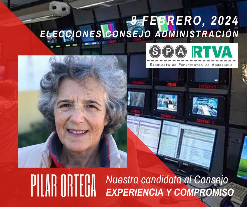 A estas elecciones desde el SPA presentamos a Pilar Ortega Espejo, compañera de una larga trayectoria profesional, comprometida con los intereses laborales y profesionales de la plantilla, como viene demostrando desde 2017, que forma parte del Comité de empresa de Sevilla. En el terreno profesional, Pilar lleva 35 años trabajando en Canal Sur, donde es Coordinadora de Programas y desde hace una década es editora del programa “Compromiso Canal Sur”. Antes había trabajado en Diario 16 y en los servicios informativos de la cadena WBGU-TV de Ohio, en Estados Unidos.