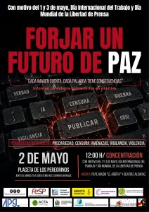 A continuación, el comunicado de la Federación de Sindicatos de Periodistas con motivo del 1 y 3 de mayo, Día Internacional del Trabajo y Día Mundial de la Libertad de Prensa: